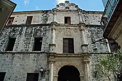 In 1761, José Martín Félix de Arrate, Mayor of Havana, considered the plaza to be the best place in the city.[4] Both the city hall (casas capitulares), police house, jailhouse and customs office faced the plaza at the time.[4][3] The Basílica Menor of San Francisco de Asís (Minor Basilica of Saint Francis of Assisi) is a Franciscan convent in the district of Old Havana, Cuba. Its construction began in 1548 and lasted until 1591, although it was inaugurated in 1575, it was damaged by storms in 1680 and 1692, and by a hurricane that broke down its tower in 1694. It began in its current form in 1716, and completed 200 years later with a series of structural reforms from 1731 to 1738.[1]