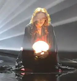 Monetta performed "Crisalide (Vola)" in the second semi-final on 16 May 2013, appearing second out of the 17 countries.[25] Her performance was similar to that of the music video, with her being seen holding a light orb meant to represent a chrysalis which transforms into a butterfly.[22][26] The choreography was arranged by Fabrizio Raggi, who served as art director for the year's participation.[27]