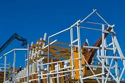 Starting in spring 2011 and concluding in 2015, the Maritime Museum of San Diego built a full-sized, fully functional, historically accurate replica of San Salvador. The ship was constructed in full public view at Spanish Landing park on Harbor Drive in San Diego. The keel was laid on 15 April 2011. The construction site, called "San Salvador Village", opened 24 June 2011 and was open to the public. The project gave people the opportunity to see an example of sixteenth century shipbuilding, which was the first modern industrial activity in the Americas.[4] The replica galleon is 92 feet (28 m) long with a beam of 24 feet (7.3 m).[5] When completed, San Salvador was launched on San Diego Bay and became part of the museum's fleet of historic and replica ships. As of April 2015 construction was nearly completed, and a launch ceremony was planned for 19 April 2015. However, on 8 April the ceremony was postponed due to "unanticipated technical complications involving the movement and lifting of the ship".[6] The ship was eventually moved by barge to a boatyard in Chula Vista. She made her public debut on 4 September 2015, leading a parade of tall ships for the start of San Diego's annual Festival of Sail. At that time she was powered by an auxiliary engine since she had not yet been fitted with sails.[7] She opened for public tours in September 2016 and now sets sail regularly on public sightseeing tours.[4]