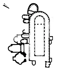 His remains were transferred to St. Peter's in 826, fearing a Saracen assault: the latter, in fact, materialised, and the basilica was destroyed.[6] The building was refounded under Pope Nicholas I (858–867), while the martyr's altar was reconsecrated by Honorius III (1216–1227), by request of the Cistercians, who had received the place. In the 13th century the arcade of the triple nave was walled in.