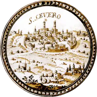 San Severo became the most populous city in Capitanata in the 16th century. The rich commerce, cultural vitality and self-government made it one of the major centers of the south, due to the presence of a large Venetian warehouse. Directly connected to the Fortore river was an important link between the Venetians and the Kingdom of Naples. Leandro Alberti (1550) writes of San Severo "this castle is very rich, noble, civilized and filled with people, and is so wealthy that he envied any other in this region."[7] The town also established ecclesiastical organizations, with four wealthy parishes, several hospitals, some religious confraternities and nine religious institutes.