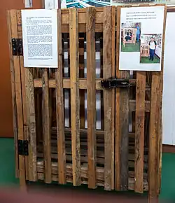 In June 1943 and October 1944, new cages were built, each are larger than the previous one. The second cage was about 2.7 x 2.1 x 1.5 metres, while the third cage was 4.5 x 2.7 x 2.7 metres. The majority of the prisoners who were placed in the cage were caught stealing food from the camp kitchen.[10]