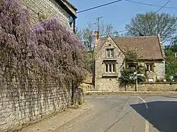 Adjacent to the manor house is the Perpendicular church of Saint Nicholas, which has a 13th-century font, shaped like an upturned Canterbury bell flower. In the south chapel is a wall monument of carved and painted alabaster, showing a knight in armor kneeling between his two wives and eleven children. Seven children kneel, in black gowns, and the others are in swaddling clothes of red and lying in a heap behind their mother. The knight, who rests below the memorial, is William Knoyle. The reading on the stone gives information on this tomb dated 1607. It seems he married 'Fillip, daughter of Robert Morgane...by whom hee had yssve 4 children & bee dead'. The knight's second wife was Grace Clavel, by whom he had three sons and four daughters, who survived him.