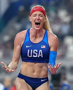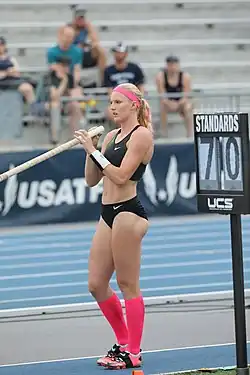 Sandi Morris (born July 8, 1992) is an American pole vault record holder .[ 2] She won the silver medal in the pole vault event at the 2016 Summer Olympics . She also won silver at the pole vault event at the 2017 World Championships in Athletics and another silver at the 2019 World Championships in Athletics . In 2018 she won gold at the World Indoor Championships . Morris has a personal best vault of 4.95 m (16 ft 3 in) indoor, set on March 12, 2016, in Portland, Oregon . She matched this height at the 2018 World Indoor Champships when setting a new championship record.[ 3] [ 4] [ 5] July 23, 2016, Morris cleared 4.93 m (16 ft 2 in) at American Track League in Houston at Rice University breaking Jennifer Suhr's American outdoor record in the pole vault . Morris cleared 5.00 m (16 ft 5 in) at 2016 IAAF Diamond League Memorial Van Damme in Brussels on September 9, 2016, to set the U.S. women's outdoor pole vault record .[ 6] [ 7] [ 8]