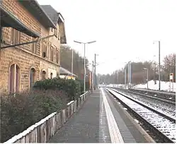 The Old Station building and one of the platforms are still visible from beside the railways line.