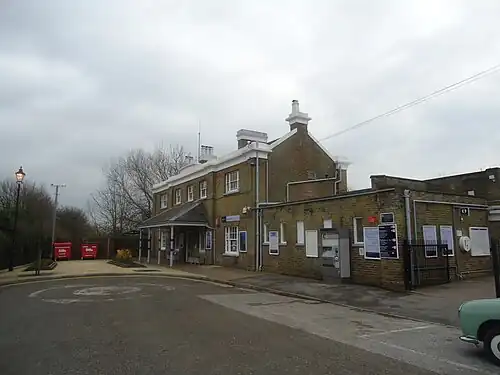 The first proposal for a station at Sandwich was in 1836–37 by the Kent Railway.[2] An independent line to London was considered, but the South Eastern Railway (SER) decided they would construct a branch line from the Ashford to Ramsgate line at Minster towards Sandwich and Deal.[3] The station was opened on 1 July 1847.[1]