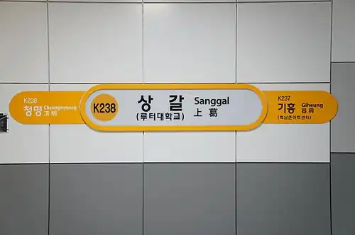 | Hangul | 상갈역 | ||||||