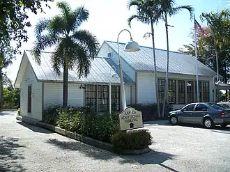 The Sanibel School House, a one-room classroom, which eventually would expand to two rooms.[6] It featured a wood stove and oven that was used to feed the children and keep warm in the winter, and the rows of students were organized by grade level. Whichever desk was closest to the fireplace oversaw keeping the fire lit and warm for the cold days. It would be used as a church in the years 1910-1919 on Sundays. Though the school was segregated, petitions between white and black families to end segregation in schools, the first school in Lee County. Grades 1-4 learned in the original room and grades 5-8 spent their time in the expanded room. Teachers weren't paid well at the time, one of the first teachers, Nancy McCann was paid $2.50 per child per semester. In 1964 the schoolhouse was vacated, by 1965 it was turned into a theater.