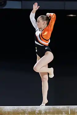 Sanne Wevers (born 17 September 1991)[3] is a Dutch artistic gymnast. She is the 2016 Olympic champion on the balance beam and was the first Dutch female gymnast to become an Olympic champion in an individual event. She is the 2018 and 2023 European champion on the balance beam. She is also the 2015 World and 2021 European silver medalist on the balance beam and the 2015 European bronze medalist on the uneven bars. She was a member of the Dutch team that won the bronze medal at the 2018 and 2023 European Championships.
