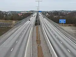 Sannesund Bridge (Norwegian: Sannesundbrua) is a motorway cantilever bridge that crosses Glomma river in Østfold county, Norway. It extends from Alvim in Sarpsborg to Årum in Fredrikstad.The bridge is 1528 metres long, the longest span is 139 metres, and the maximum clearance is 30 metres. The bridge has 48 spans.[1]