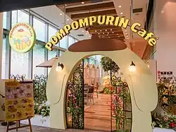 In 1983 Sanrio built the Strawberry House (ja:いちごのお家) store in Tokyo.[82] The store is shaped like a strawberry and was based on the fictional home of Button Nose.[83] It was originally planned to be in place for a limited time, but due to positive customer response the store remained in operation until 2011.[82] The anime series Button Nose, which began in 1985, was the first television anime series produced by Sanrio.[77][78] The series places Button Nose in a fairy tale and science fiction setting, where she turns out to be descended from royalty.[77]