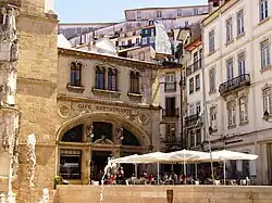The existence of the Jewish quarter, within the limits of its territory (around Rua Nova) was a decisive factor in the development of the mercantile community (even as Manuel I impeded their religious liberties).[2] In the areas of Praça 8 de Maio, Rua da Louça, Rua da Moeda, Rua da Sofia, Pátio da Inquisição and Largo dos Oleiros the merchant classes thrived, resulting in the establishment of the Municipal Market, shops, banking institutions, offices, medical practives, bookstores, kiosks, café, restaurants and taverns.[2]