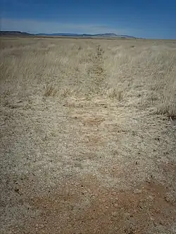 Segments of this trail in Missouri, Kansas, Oklahoma, and New Mexico are listed on the National Register of Historic Places.[19] In Missouri, this includes the 85th and Manchester "Three Trails" Trail Segment, Arrow Rock Ferry Landing, Santa Fe Trail – Grand Pass Trail Segments, and Santa Fe Trail – Saline County Trail Segments. The longest clearly identifiable section of the trail, Santa Fe Trail Remains, near Dodge City, Kansas, is listed as a National Historic Landmark.[20] In Colorado, Santa Fe Trail Mountain Route – Bent's New Fort is included on the National Register.