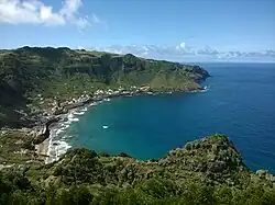 Colonization progressed between 1443 and 1447, principally from settlers from the Portuguese Alentejo and Algarve, who populated the northern coast along the Baía dos Anjos (English: Bay of the Angels) and later in the area of Vila do Porto (in the southwest coast). This area would attain the title of Vila do Porto for the nestled anchorage that developed there, and the municipality would also adopt the name, by 1470 (as indicated on their floral).[12] By the end of the 16th century, Santa Maria was divided into three parishes: Nossa Senhora da Assunção (Vila do Porto), Santa Bárbara and Santo Espírito. The governing classes, the families[13] which controlled the politico-administrative organs of the municipality and parishes were all intermingled by marriage and class, and after the Iberian Union this concentration increased.[14]