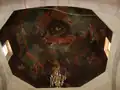 There are murals in the domes. In the sacristy dome is a depiction of La crucificción de Jesucristo (Jesus Christ's crucifixion); the dome symbolizes heaven, whence angels, cherubs and saints look on; the central image is Christ being taken down from the cross.