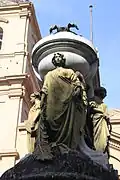 A mausoleum was opened in 1903 by the sculptor Ettore Ximenes and located in the temple courtyard, houses the remains of Manuel Belgrano, who was buried in the habit of the Dominican order. These were first buried under a slab at the entrance of the church, the general will and testament, which belonged to the Third Order of St. Dominic. They are also buried in the convent of the remains of General Belgrano parents, for the generous contributions that had favored the temple and the remains of General Antonio González Balcarce, Hilarion de la Quintana. A plaque reminds Martín de Álzaga, although his remains are in the Recoleta Cemetery in the vault familiar.