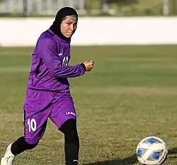 Sara Zohrabi Nia (Persian: سارا ظهرابی نیا;[2] born 13 November 1996), known as Sara Zohrabi (Persian: سارا ظهرابی), is an Iranian footballer who plays as a midfielder for Kowsar Women Football League club Heyat Football Alborz and the Iran women's national team.[4]