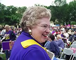 Weddington attended the historic 1977 National Women's Conference in Houston as a Texas delegate speaking on the resolution of women's reproductive freedom.[26]
