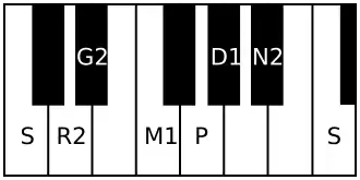 | Arohanam | S R₂ G₂ M₁ P D₁ N₂ Ṡ |