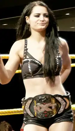 Saraya-Jade Bevis (/səˈreɪə/; born 17 August 1992) is an English professional wrestler. She is known for her time in All Elite Wrestling (AEW), where she performed mononymously as Saraya, and in WWE, where she performed under the ring name Paige. She was the youngest female champion in WWE history, a two-time WWE Divas Champion, and the inaugural NXT Women's Champion. She is also the first woman to hold both a WWE and NXT Women's Championship simultaneously.[10] She is a former AEW Women's World Champion.