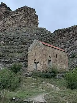 The ruler of Sarir and the inhabitants of his fortress were reported to be Christians, while the population of the countryside remained pagans.[3] Relics of Christianity, like crosses, churches and Christian burials, are, however, commonly found throughout much of Avaria. The most significant preserved Christian monument is the Datuna Church, which has been dated to the late 10th–early 11th century. Several stone crosses bearing Georgian, Armenian and even Avarian inscriptions have also been noted.[7] Christianity probably arrived via Georgia[8] and had its peak in Avaria contemporary to the Georgian Golden Age in the 10th–12th centuries. Christianity remained dominant until the early 14th century, but eventually disappeared in favour of Islam.[9] Oral traditions recall that the Datuna church was looted by Muslims in around 1475.[10]