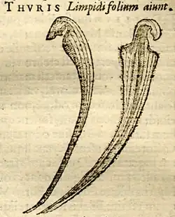 Sarracenia were known to Europeans as early as the 16th century, within a century of Christopher Columbus' discovery of the New World. L'Obel included an illustration of S. minor in his Stirpium Adversaria Nova in 1576.[24] The first description and plate of a Sarracenia to show up in botanical literature was published by Carolus Clusius, who received a partial dried specimen of what was later determined to be S. purpurea subsp. purpurea, publishing it under the name Limonium peregrinum. The exact origins of this specimen remains unknown, as few explorers are known to have collected plant specimens from the range of this subspecies before that time. Cheek and Young suggest that the most likely source is Cartier's expeditions to what is now Quebec between 1534 and 1541.[24] The fragile flowerless specimen that made its way to Clusius 60 years later was enough to excite his interest, but not enough for him to place it among related plants; his closest guess was the wholly unrelated Sea Lavender genus.