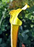 Sarracenia is a genus of carnivorous plants indigenous to the eastern seaboard of the United States, Texas, the Great Lakes area and southeastern Canada, with most species occurring only in the south-east United States (only S. purpurea occurs in cold-temperate regions). The plant's leaves have evolved into a funnel or pitcher shape in order to trap insects.