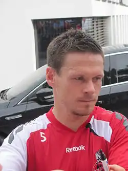 Sascha Riether (German pronunciation: [ˈzaʃa ˈʁiːtɐ]; born 23 March 1983) is a German former professional footballer who played as a right-back.[2] In addition to playing in the right back position, Riether has also played in defensive midfield, center back and right midfield positions throughout his whole career.[3][4]