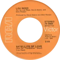 "Satellite of Love" is a song by American musician Lou Reed. It is the second single from his 1972 album Transformer. At the time of its release, it achieved minor US chart success (No. 119), though it later became a staple of his concerts and compilation albums.