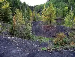 The coal in the Saunders Creek area is of high-volatile bituminous "C" rank and is part of the early Paleocene Coalspur Formation.[4] Fossils from the Paleocene period have been found near Saunders Creek, including a possible pantodont upper molar[5][6] and Paleocene fossil leaves.[7]