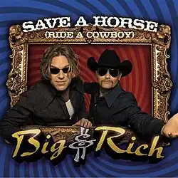 "Save a Horse (Ride a Cowboy)" is a song written and recorded by American country music duo Big & Rich. It was released in April 2004 as the second single from their debut album Horse of a Different Color. It reached number 11 on the U.S. Billboard US Country chart. The song received wide exposure when ESPN featured the song in commercials for its coverage of the 2004 World Series of Poker. It was also featured in the Boston Legal episode "Death Be Not Proud".