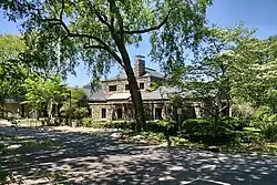 Scarsdale's public library, which had been housed in historic Wayside Cottage since 1928, moved to its present structure on the White Plains Post Road in 1951.[12] The driving force behind the library was New York City publisher S. Spencer Scott, who raised $100,000 for the project after the village rejected a bond issue to fund the building in 1938. The new library opened with 27,000 books and Sylvia C. Hilton serving as the first librarian.[12]