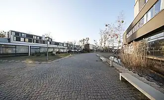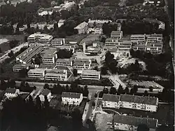 - ^ The library was part of the council idea and offered a range of books and magazines. Due to funding issues as well as the competing library of the university the library was no longer profitable and had to be closed down. The building was used as an interim room for table tennis and later on as a gym. The shop also only remained for a short time in the Studentendorf. After the buildings by Pfennig & Sieverts were completed, the students initiated the foundation of a kindergarten in order offer childcare support for parents living in the Studentendorf.