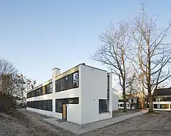 All residential buildings – with the exception of the double house 12/13 – are one to three storeys and were created for residential groups of up to 30 students. The heritage-listed site of the first and second phases has been preserved almost entirely including the furniture. Between 1976 and 1978, four five-storey residential community houses were added by the architects Krämer, Pfennig, Sieverts & Partner in a third section.