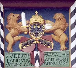 Arms of the Holy Roman Empire, the Canton of Bern and the von Erlach family above the upper gatehouse
