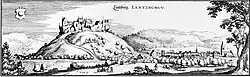 View of Lenzburg and Lenzburg Castle in about 1642, by Matthäus Merian