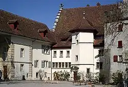 Today the rear building is Stapfer House, named for Philipp Albert Stapfer, a revolutionary and a minister in the Helvetic Republic. Since 1960 it has served as the Events Centre of the Stiftung Stapferhaus Lenzburg (Lenzburg Stapfer House Foundation), offering a variety of cultural activities such as exhibitions on current events.