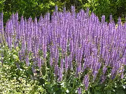 - Salvia × sylvestris 'Mainacht': compact perennial, deep violet flowers[39]