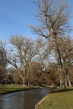 Schwabinger Bach is a stream in Bavaria, Germany. It starts in the centre of Munich, flows through the Englischer Garten and flows into the Isar near Garching bei München.