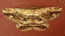 The adult's wingspan is 40 mm. The termen of the forewings and hindwings have a wavy edge with a black bordering subterminal line. The moth varies from light brown to dark brown and the underside is lighter with a dark brown terminal border and a dark brown spot in the outer edge of each wing.