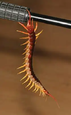{{cite web}}: CS1 maint: multiple names: authors list (link) - ^ a b Novel foraging behaviors of Scolopendra dehaani (Chilopoda: Scolopendridae) in Nakhon Ratchasima, Thailand, Hodges, Cameron and Goodyear, Jesse, https://www.researchgate.net/publication/348890454_Novel_foraging_behaviors_of_Scolopendra_dehaani_Chilopoda_Scolopendridae_in_Nakhon_Ratchasima_Thailand