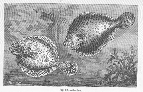 The Scophthalmidae are a family of flatfish found in the North Atlantic Ocean, Baltic Sea, Mediterranean Sea, and Black Sea.[2] Fish of this family are known commonly as turbots,[1][3] though this name can refer specifically to Scophthalmus maximus, as well. Some common names found in species of this family are turbots, windowpanes, and brills.[4]