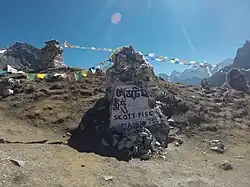 - ^ Breashears, David. "Epilogue". High Exposure. "Except for Scott's body, still wrapped with a pack and rope the way Anatoli had left him, the summit slopes were mercifully free of the tragedy."