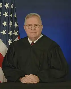 Stucky served as an Air Force judge advocate on active duty from 1973 to 1978. He was legislative counsel and principal legislative counsel to the Department of the Air Force from 1983 to 1996, where he worked on such legislation as the Goldwater-Nichols Act and legislative responses to the First Gulf War.[4] From 1996 to 2006, he served as general counsel and minority counsel to the Senate Committee on Armed Services. He was appointed to the Court by President George W. Bush on December 20, 2006. Stucky is a retired colonel in the Air Force Reserve, and was awarded the Legion of Merit for outstanding service upon his retirement in 2003.[5][6] His judicial term ended on July 31, 2021, and he assumed senior status thereafter.