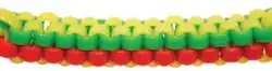 One strand is tied around one or more other strands. The more strands that are used in the middle the fatter the Chinese staircase is. This is made with different colour strings.[10]