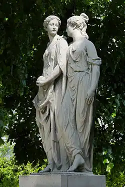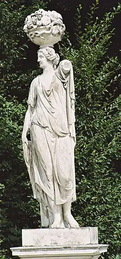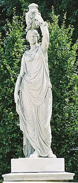 | 4 | Ceres and Dionysus | Joachim Günther | Ceres was the goddess of agriculture, marriage, and death, representing the generative power of nature.[7] She is shown with Dionysus, the god of the grape harvest, winemaking, and wine, and of ecstasy. He was the son of Zeus and Semele.[8] | |