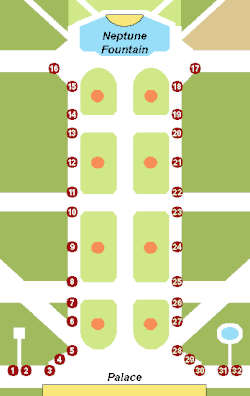 | 40 | Angels Fountain | Angels Fountain was created between 1773 and 1780, and was restored in 1949. At that time, the heads of the cherubs and the drapery were replaced. In 1994, the original helicoidal pool was replaced by the pink marble pool. The original pool was restored in the foyer of the palace. | ||