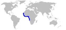 The West African catshark is found in the eastern Atlantic Ocean at depths between 45 and 500 metres (148 and 1,640 ft).[2] Its range extends from Mauritania in West Africa to Angola. It is a bottom-dwelling species inhabiting the continental shelf on muddy and rocky seabeds.[2]