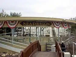 Sea Dragon is a junior wooden roller coaster located at the Columbus Zoo and Aquarium in Powell, Ohio. The ride is in the Rides At Adventure Cove section of the zoo. Built by Philadelphia Toboggan Coasters (PTC) under famed designer John C. Allen, the roller coaster opened in 1956 as Jet Flyer. It was one of three junior wooden coasters that Allen designed shortly after becoming president of PTC in 1954 – the other two were Flyer at Hunt's Pier and Valley Volcano at Angela Park. They were based on earlier designs developed by another legendary coaster architect Herbert Schmeck, who was Allen's mentor.[1] The ride became the Sea Dragon when the park reopened as Wyandot Lake in 1984.[2]