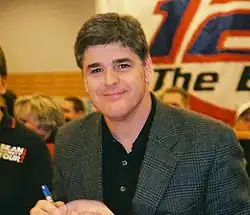 Sean Patrick Hannity[3] (born December 30, 1961)[4] is an American conservative television presenter, broadcaster and writer.[5][6][7] He hosts The Sean Hannity Show, a nationally syndicated talk radio show, has hosted a self-titled political commentary program on Fox News since 2009, and co-hosted the original Fox News debate show Hannity & Colmes with Alan Colmes from the network's founding in 1996 to 2009.